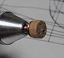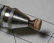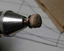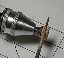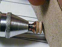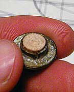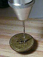 Второе приспособление 'мама', сделано из латунного диска (здесь из монеты), на который напаян круг, внутренний диаметр которого соответствует внешнему диаметру парного 'папы'. Этот диск так же просверлен в трех местах, соответствующих штырькам 'папы'. |
