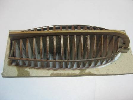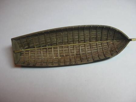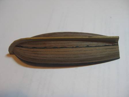 Теперь можно приступать к обшивке. Баркас обшит вгладь и имеет два слоя обшивки.