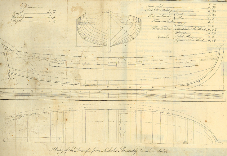 Перед походом на Таити за плодами хлебного дерева, корабль был оснащен двумя гребными судами: 23-футовым баркасом и 20-футовым куттером. После мятежа, возглавляемого Кристином Флетчером. Мятежники посадили капитана Блая вместе с 18 верными ему членами команды в баркас, на котором они после 40 дней скитаний, достигли Тимора. Благодаря этому беспрецедентному плаванию, в котором Блай потерял всего одного члена команды в стычке с туземцами, без карт, только по памяти, эту шлюпку можно считать едва ли не самой известной шлюпкой в истории мореплавания. В истории еще немало примеров подобных переходов, например через полтора года почти в точности путь Блая повторили шлюпки с Пандоры, разбившейся у Большого Барьерного рифа, на борту Пандоры находились как мятежники с Баунти, оставшиеся на Таити, так и лоялисты.