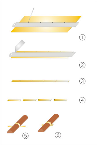 Сначала по линейке иглой, установленной для удобства в цанговый зажим, надавил 4 отверстия, обязательно, чтобы они располагались на одной прямой. После надавливания иглой с одной стороны, с другой стороны надфилем убрал образовавшиеся пупырышки. Получились 4 отверстия (шаг 1). Затем резаком по линейке отрезал полосу, стараясь отрезать ее таким образом, чтобы отверстия оказались посередине. За один проход отрезать латунь сложно. Требуется минимум два прохода. Ширина полосы 1 мм (шаг 2). Далее разрезаем на 4 части одинаковой длины (шаг 3) и скругляем кончик, на котором находится отверстие (шаг 4). Хомут, которым фиксируется мачта, - также полоска латуни шириной 1 мм, отрезанная также резаком по линейке. Хомут сгибал на палочке от леденца, разрезанной вдоль по оси (шаг 5). Кончики закруглял, соединял и спаивал. Делал это пинцетом с острыми лапками (шаг 6). Далее брал обрезок планки, из которой делал банки, прикладывал с двух сторон ровно, точно друг под другом детали крепления (см. шаг 4), вставлял хомут и пропускал шкив – кусочек проволоки с большим запасом по длине. Аккуратно капал припой. Крепление чернил в специальной жидкости Brass Black, которая прекрасно чернит латунь, медь, оловянный припой, сталь. Все металлические элементы шлюпок чернились именно этой жидкостью. Фиксируется хомут на баркасе просто "пальцем" (изогнутый буквой Г кусок проволоки)