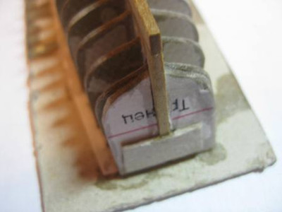 Распечатывать матрицу лучше всего на лазерном принтере, так как при таком способе печати изображение более устойчиво. Далее, используя клей-карандаш, я наклеил отпечатки на миллиметровый картон. Клей-карандаш использовался из-за того, что при использовании ПВА бумага коробится. Поэтому лучше использовать либо момент, либо клей-карандаш. Однако, при применении последнего, нужно выбрать подороже и покачественнее, иначе приклеенные отпечатки отлетают при малейшем прикосновении. Подложку матрицы я наклеивал на толстый 2-хмиллиметровый картон. Собирал все воедино при помощи Секунды-геля, пролив еще раз все торцы для прочности обычной секундой. Когда клей высохнет, нужно снять малку, а заодно проверить обводы. Местами пришлось подрезать. Матрица готова к дальнейшей работе.