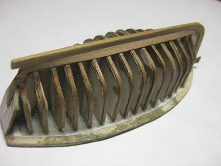 Весла также делал из ореха – остатков от планок черновой обшивки. Сначала вырезал профиль весла. Затем при помощи ножика с лезвием №11, надфиля и шкурки придавал веслу необходимую форму. Чтобы не заваливать куттер веслами. Сделал их только 4 штуки.