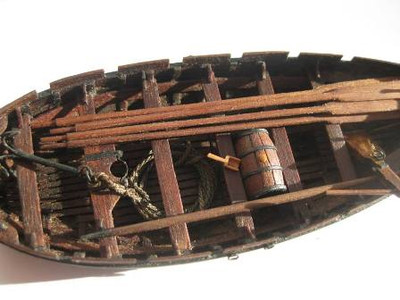 Оснащение куттера куда богаче, чем баркаса. Помимо якоря, куттер имеет анкерок, отпорный крюк, несколько весел и черпак.